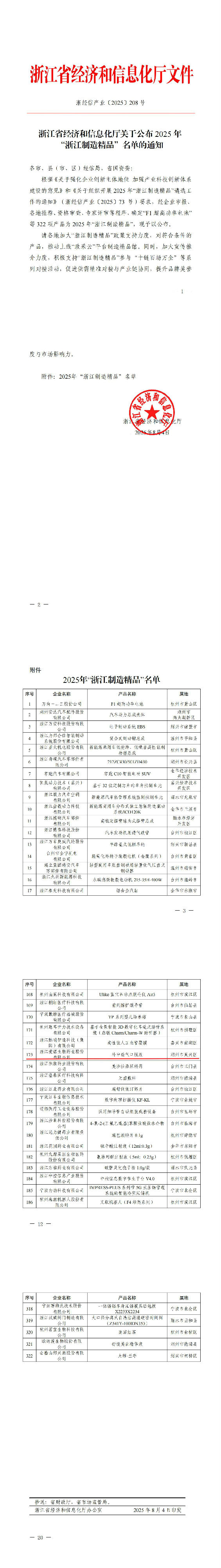 浙江省公布2025年“浙江制制精品名單”