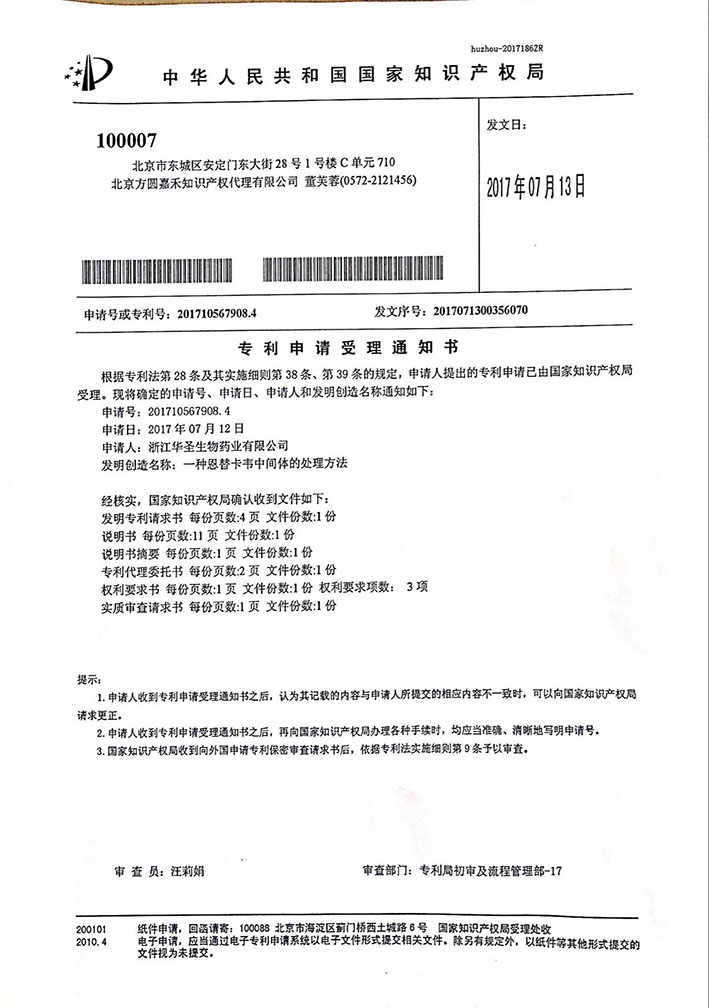 喜報(bào):恭喜浙江愛諾生物藥業(yè)股份有限公司獲得專利:“一種恩替卡韋中間體的處理方法”,在此特向一直以來關(guān)心支持本企業(yè)的各位領(lǐng)導(dǎo),各位朋友衷心表示感謝!